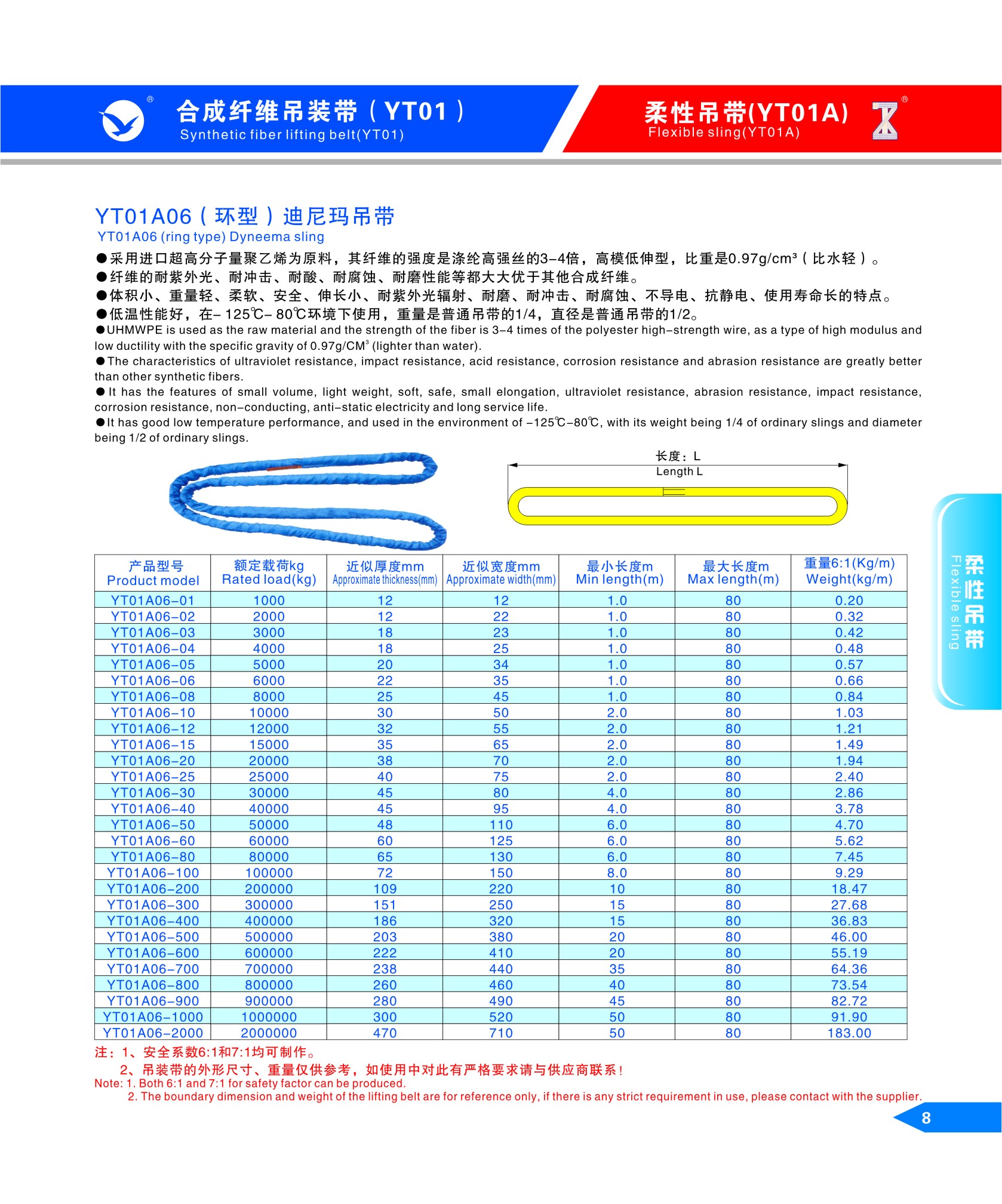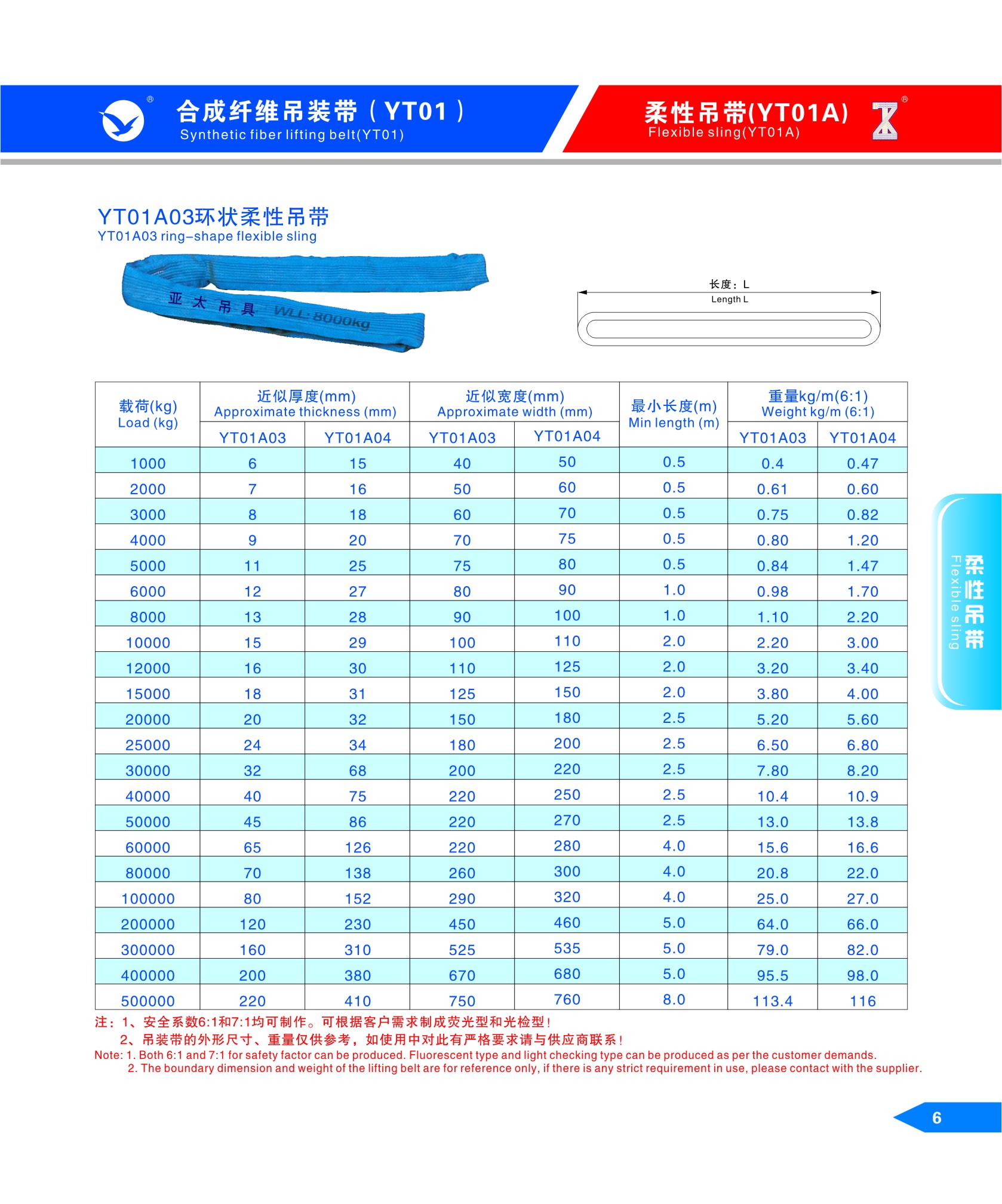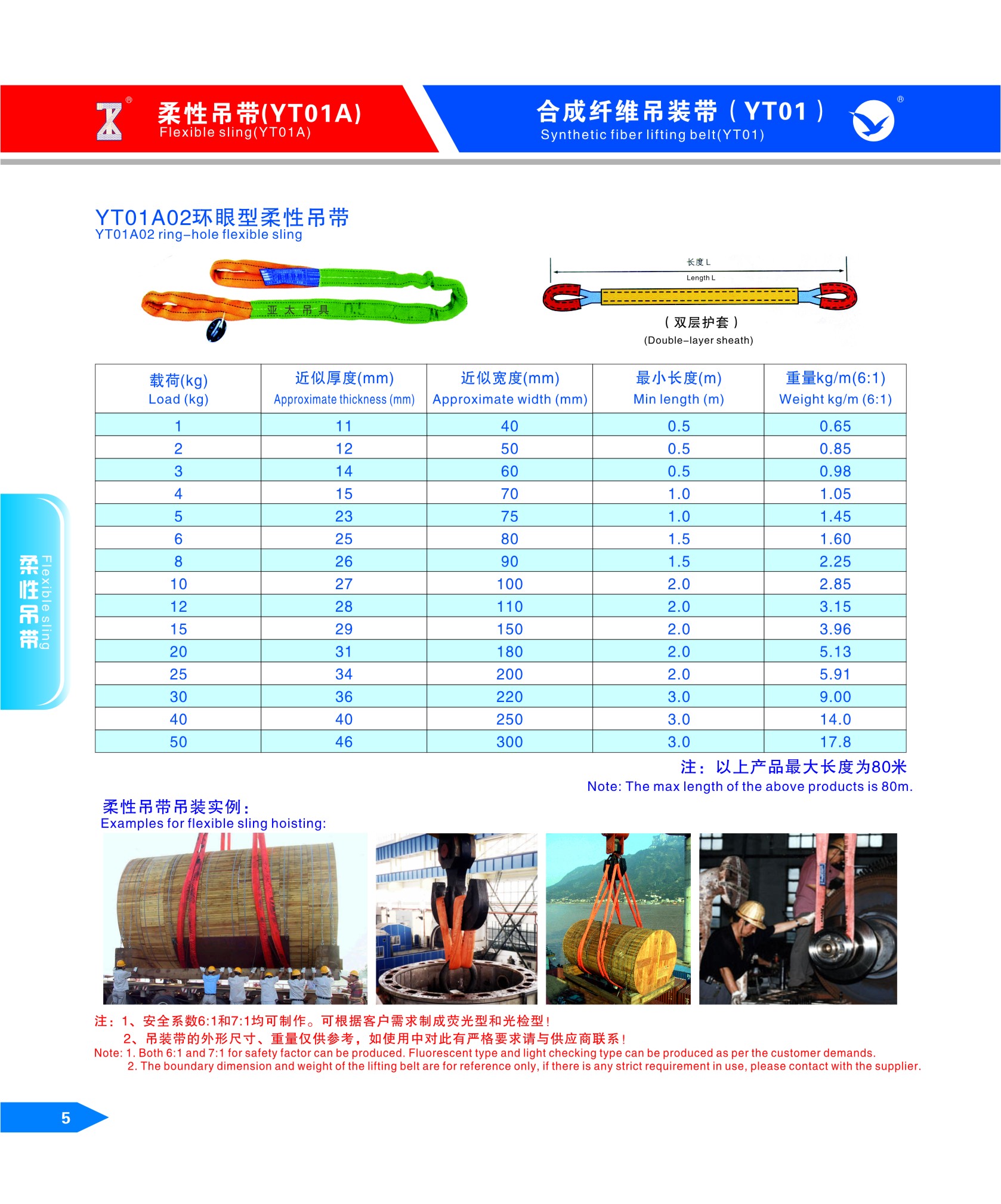 我公司生產的合成纖維吊帶是吊裝繩和鋼絲繩的換代產品,比同類金屬繩鏈相對輕便,同時操作起來也更為安全、簡易快捷,減少了對人身反向傷害的可能性;在使用過程中有減震、不腐蝕、不導電,且在易燃易爆環(huán)境下無火星等特點;可減少吊裝作業(yè)對操作表面損傷和對噴漆表面的損害。合成纖維吊裝帶按類型分,主要分為圓型、吊裝帶和扁平吊裝帶兩大類。扁平吊裝帶主要由尼龍纖維(聚胺合成纖維)、滌纖維(聚酷合成纖維和纖維(聚丙合成纖維)制成它們各有特性,可適合于不同的環(huán)境場合,但不同材質的吊裝帶絕對不可以混用。具體的扁平帶的特性可見扁平吊裝帶圓型吊裝帶的材質主要是滌綸合成纖維(聚酷),外層用滌圓套管做為保護層,而內芯用連續(xù)的滌綸芯紗作為承受吊裝負載。(見圓形吊裝帶。 )
